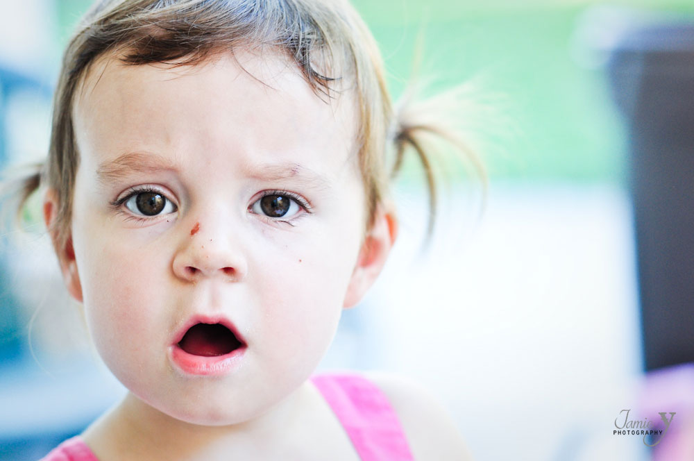 The busier I get, the less I take pictures of my own daughter. This week was pretty slow for me and I wanted to try out back button focusing on my camera so what better person then my cute little daughter. This is actually the first day we put pigtails in her hair as well. I finally found some that will stay in her hair. She looks so much like a little girl. They grow way to fast.